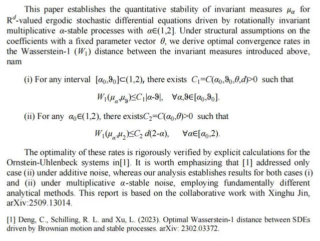 报告题目:Optimal Rates for Ergodic SDEs Driven by Multiplicative ɑ-Stable Processes in Wasserstein-1 distance