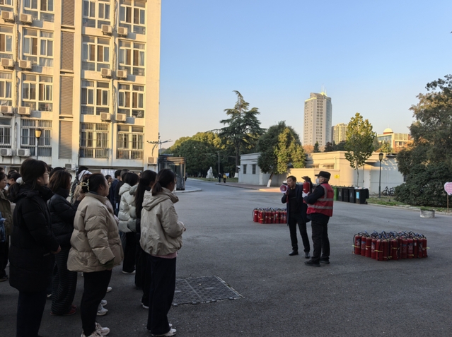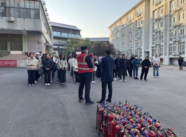 为深入贯彻落实第34个全国消防宣传月活动要求,紧扣"全民消防生命至上——安全用火用电"主题,2025年11月19日下午4时,数学与统计学院在云龙校区食堂与7号宿舍楼之间的空地组织开展灭火器使用专项消防演练。2023级、2024级各宿舍长、班干部约150人齐聚现场,在专业人员指导下扎实学习掌握消防实操技能。