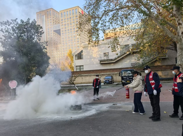演练开始前,校党委保卫部消防科科长赵远结合"119"消防宣传月主题,深入阐述了活动的重要意义:"宿舍区域是校园火灾防控的重点部位,同学们是安全防护的重要力量。本次演练旨在帮助大家实现从'懂理论'到'会操作'的转变,切实筑牢初期火灾防控屏障。"随后,他系统讲解了灭火器相关知识,重点介绍了校园常用的干粉灭火器适用范围,详细演示了压力表检查、喷嘴疏通等使用前准备工作,并逐项拆解"提、拔、握、压"四字操作口诀的核心要领。