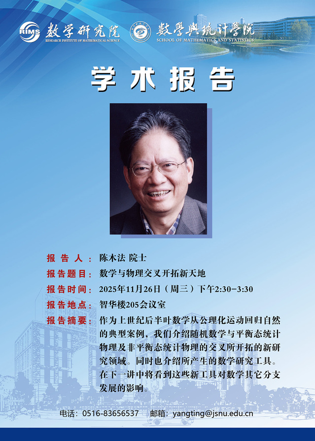 11月26日 陈木法院士学术报告:“数学研究的实践与感悟——选题与攻关”系列讲座(二)
