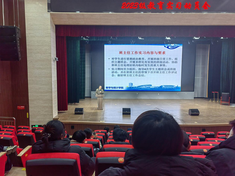1月15日,数学与统计学院召开2023级师范生教育实习动员大会,教学副院长李建波、数学系主任张运涛、辅导员马云、及部分实习指导老师和全体同学参加会议。