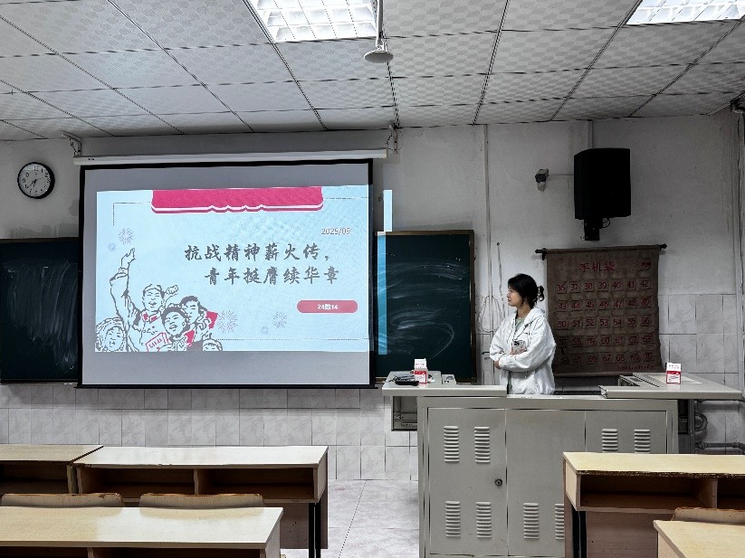 各班以多种多样的形式开展了此次活动。研究生第六团支部在团支书带领下观看学习了视频《当代青年追寻中国抗战精神之旅采访活动圆满收官》和《卫星遥看抗战烽火,铭记历史精神永续》,从中同学们体会到了爱国主义的深刻内涵,也认识到爱国不仅是情感,更是融入血脉的责任担当,应将其转化为心系祖国、服务人民、勤学苦练、增长才干的实际行动。23数12班于9月23日在线上开展了九月团日活动,团支书带领班级同学一起阅读了文章《习近平:在纪念中国人民抗日战争暨世界反法西斯战争胜利80周年大会上的讲话》并且进行“纪念中国人民抗日战争暨世界反法西斯战争胜利80周年”的线上答题活动,引导大家要怀爱国之心、立报国之志、增强国之能,凝聚民族复兴力量。24数41在团支书带领下开展了“青年讲党史”演讲活动,不仅丰富了同学们的抗战知识,同时也让大家明确了当代青年必须坚定必胜信念,保持革命乐观主义精神,积极识变、应变、求变,以昂扬的姿态面对挫折与挑战。奋斗是青春最亮丽的底色,新时代青年应自觉维护民族团结,同心同德、同心同向,汇聚起民族复兴的青春力量,勇当新时代英雄。